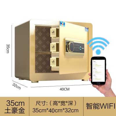 虎牌保险箱家用小型 35土豪金 办公保险柜 指纹密码全钢防盗入墙